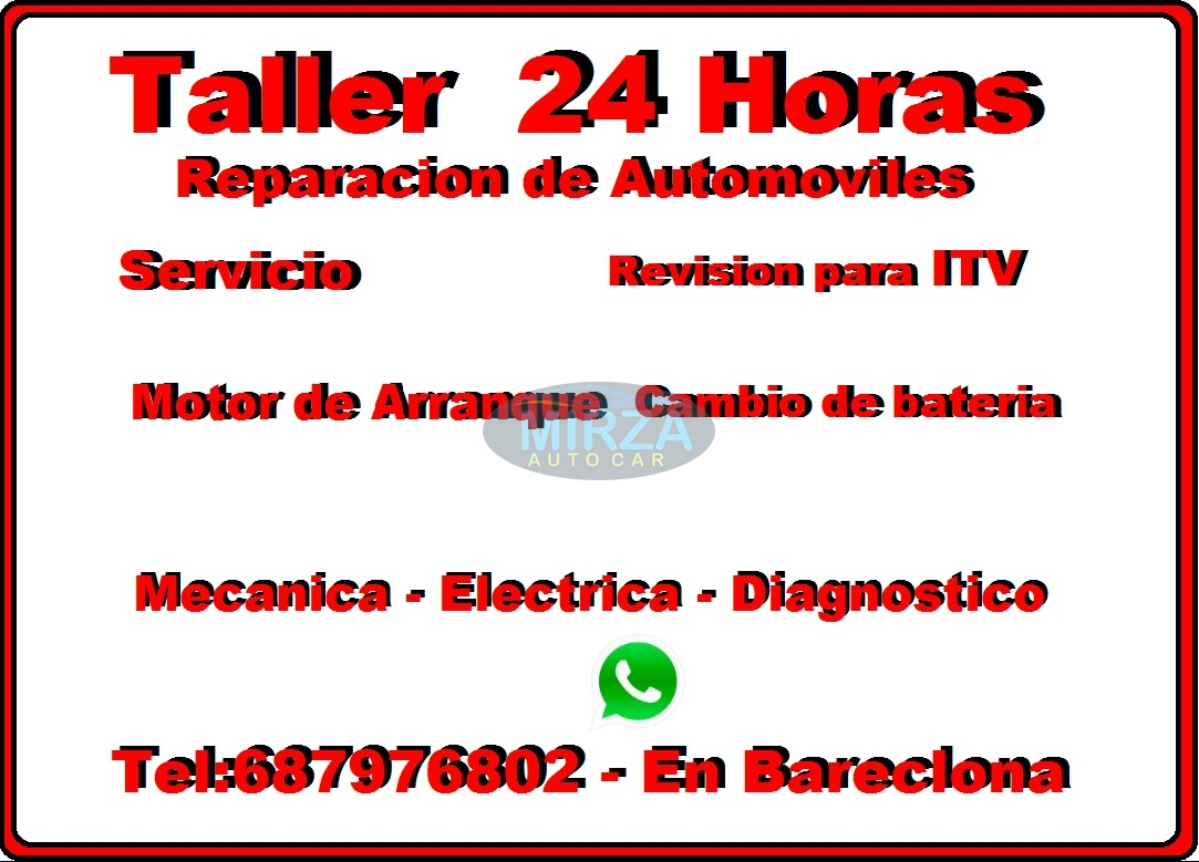 TALLER ABIERTO 24H/365 días del año Mecánico, Urgencia, de , vehículo , Mecánico , Electricidad, diagnostico 24 horas , sábado, domingo, o , festivos, 365, días, Domicilio, cambiar , Batería, Alternador, motor de , Arranque, Distribución, Embrague, Pastilla, de , freno, disco de freno filtros Turbo, válvula, EGR, junta de culata , luces, fallo de motor diagnostico, aceite de motor caja de cambio radiador calefacción máquina de lunas espejos bomba de agua correo del alternador manguitos inyectores bomba de inyectores cambiar combustible pinchazo arrancar coche domicilio todos los marcas en Barcelona capital contacto con teléfono o whatsapp-0034 687976802