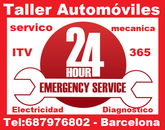 Taller Automóviles abierto día noche Servicio mecánico 24 horas a domicilio. Taller, Servicio - Mecánica - Electricidad - Diagnóstico de automóviles, taller, reparación de automóviles, las 24 horas, Barcelona capital, cambio, cinturón, distribución, frenos, pastillas y discos, alternador, motor, motor de arranque, la batería, el radiador, suspensión, luces de embrague radiadores de calefacción de agua de calefacción opinión calentador de la bomba Para, ITV, lunas de la máquina, los espejos, el cambio, parabrisas, motor portador, caja de cambios, caja de cambios, cambio, junta de culata, Motor. . . . etc Barcelona capital telefono 0034 687976802